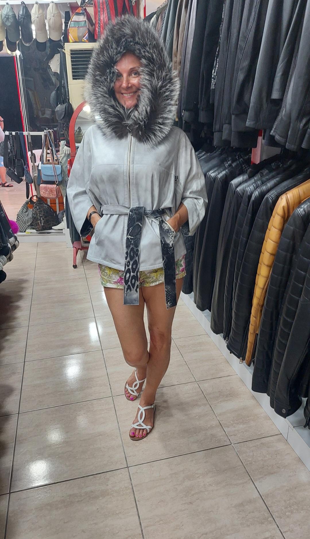 Çift taraflı giyilebilmektedir. Kapüşonu fox aksesuarlıdır. Boy 57 cm dir